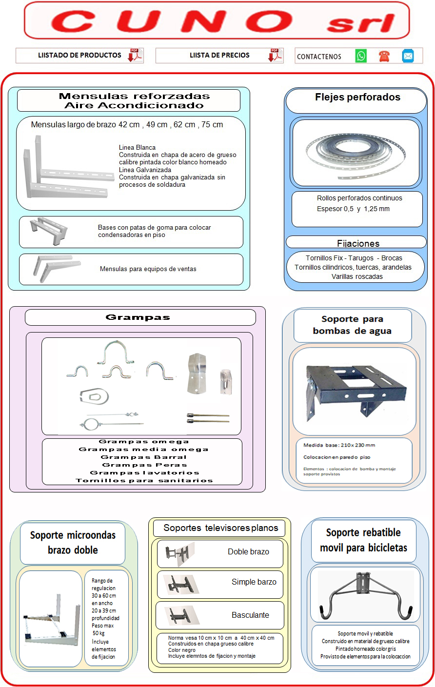 Mensulas equipos aire acondicionado-Mensulas equipos minisplit-Mensulas equipos piso/techo-Mensulas equipos ventana-Bases condensadoras en piso-Conjuntos fijacion